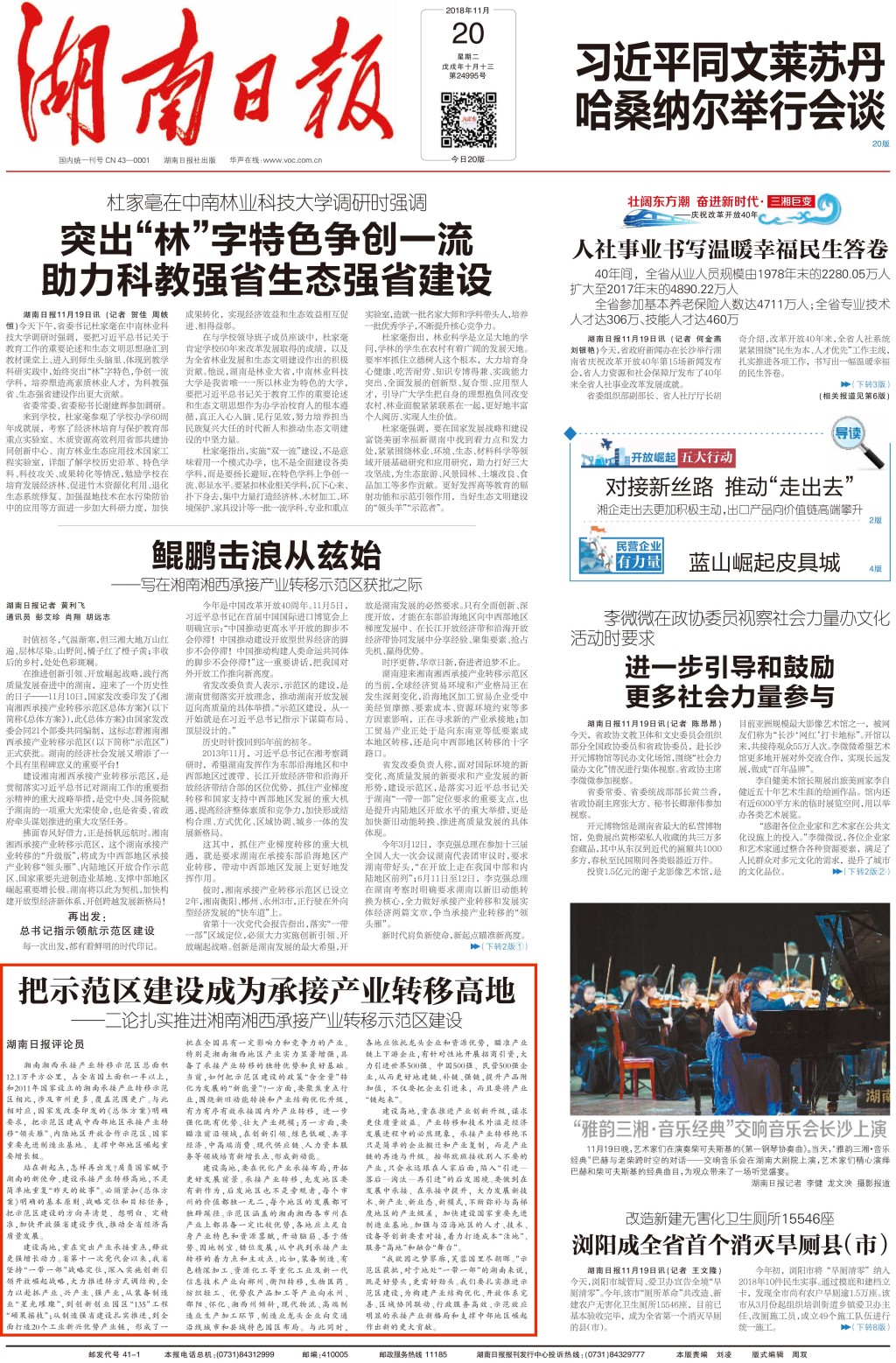“我欲因之梦寥廓,芙蓉国里尽朝晖。”示范区获批,对于地处“一带一部”的湖南来说,既是好势头,更需好劲头。我们要扎实推进示范区建设,为构建产业结构优化、开放体系完善、区域协同联动、行政服务高效、示范效应明显的承接产业新格局和支撑中部地区崛起作出新的更大贡献。