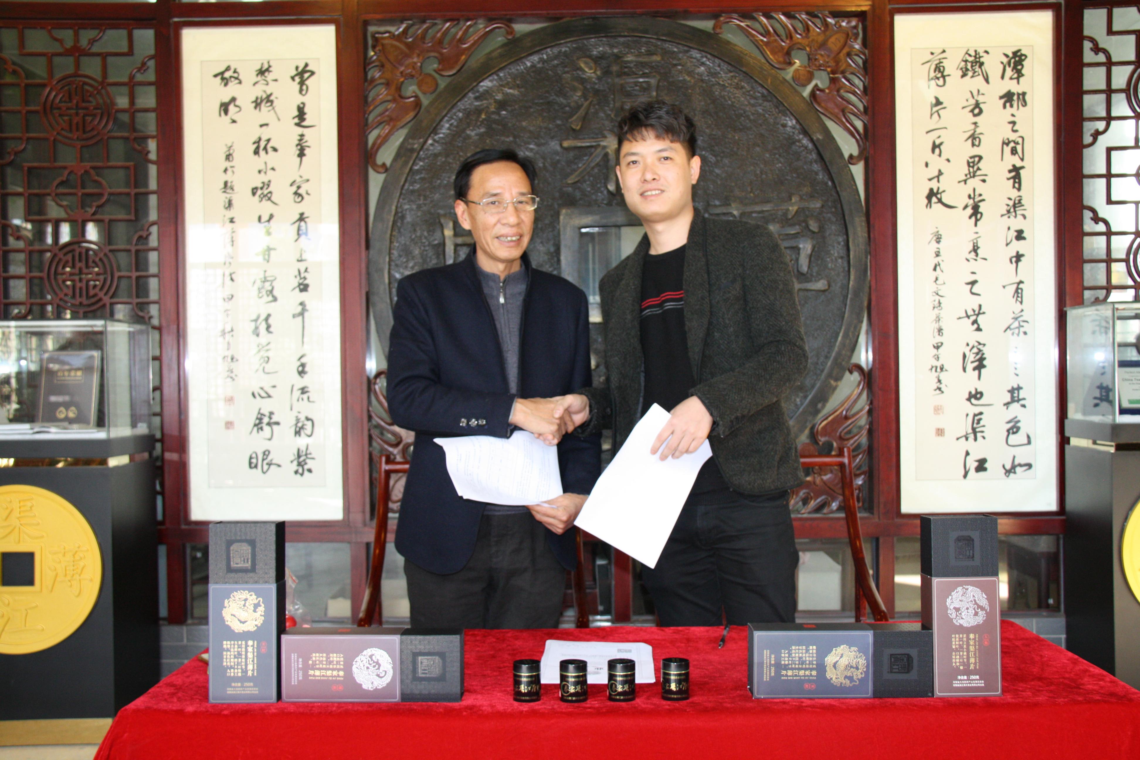 湖南省渠江薄片茶业有限公司董事长陈建明与湖南维诺供应链管理有限公司董事长朱引签署合作协议