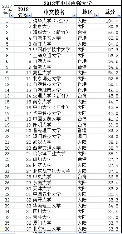 今天,软科正式发布了2018年中国两岸四地大学排名。这是该排名自2011年问世以来第八次发布。该排名展示了我国大陆、台湾地区、香港特别行政区和澳门特别行政区领先的100所研究型大学。