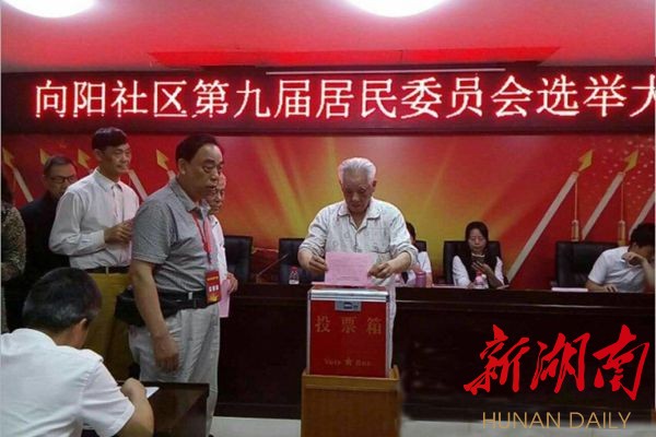 △石鼓区人民街道向阳社区第九届居民委员会选举大会现场。