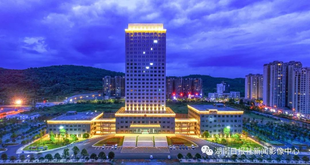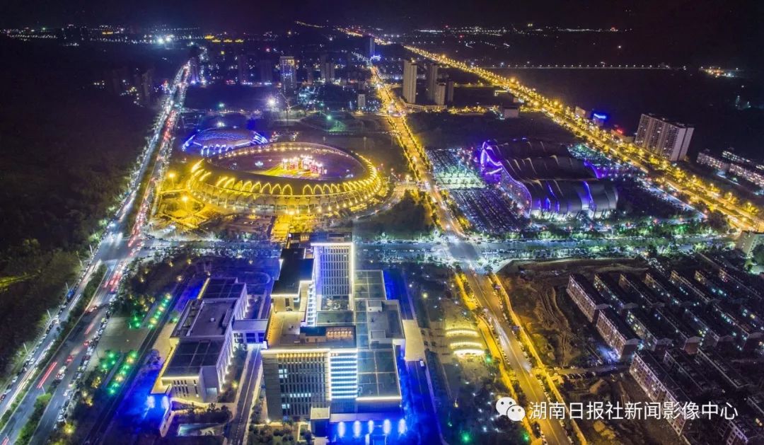 2017年8月13日,夜色中的城东新区苏仙区行政中心。