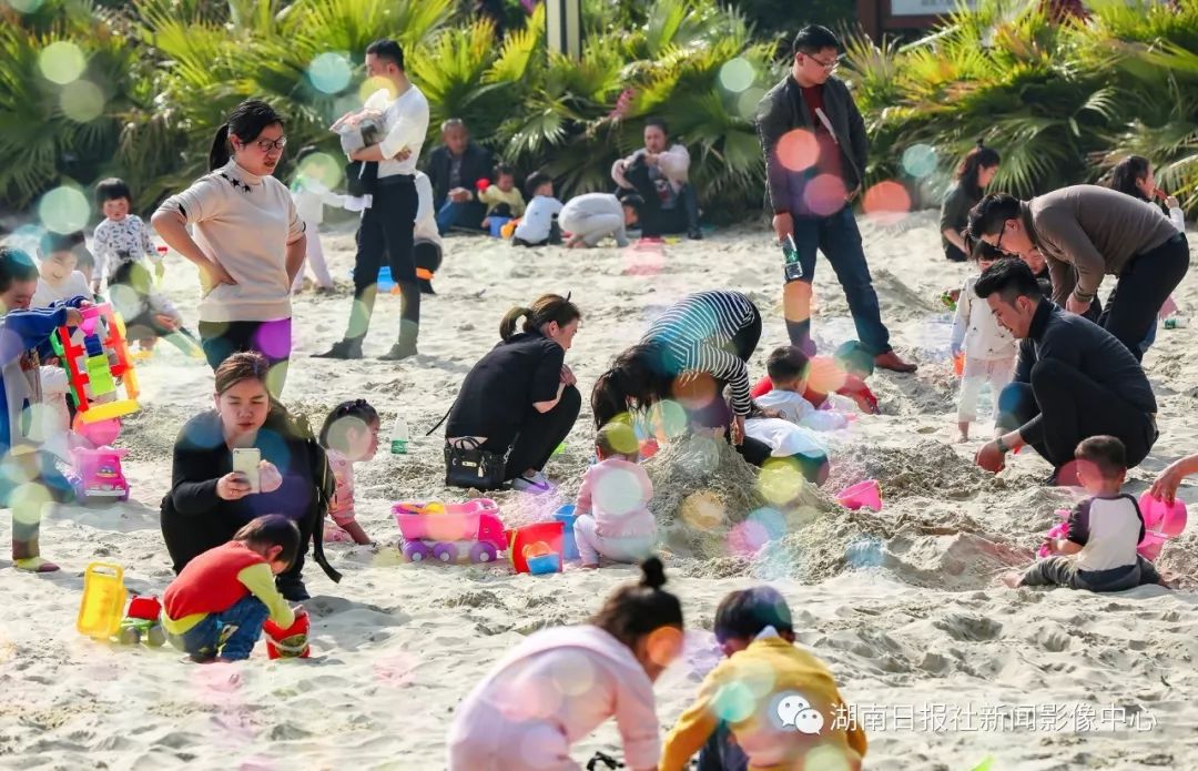 2018年2月17日,沙滩公园内孩子和家长在玩耍。