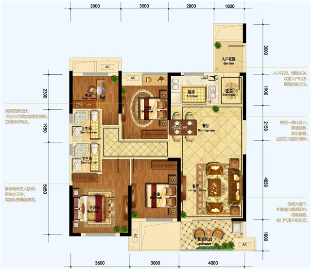 明厨、明卫、明卧……全明人居户型设计,保证室室明朗,采光充足,通风性好,即使是在阴雨天气下,室内也不会过于阴暗。