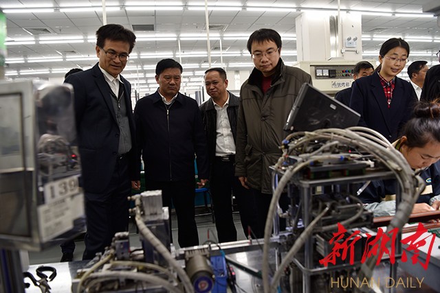 与会沅陵县领导和专家教授参观沅陵县向华电子科技公司和湖南奇力新集团公司两家电子信息企业技术研发中心和生产车间。中南大学为该两家企业作为产学研合作、校企合作人才培养基地分别授牌。