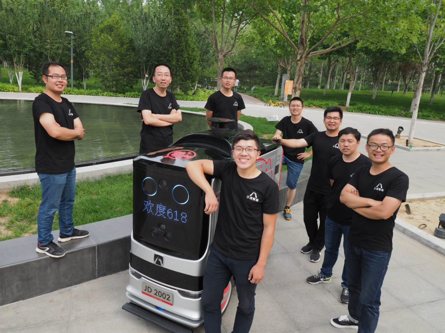 (行深智能部分研发团队,左二为董事长兼总经理安向京,右三为李睿。)
