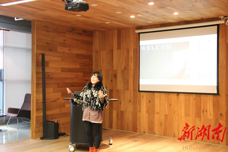 12月22日下午,“湖水·暖阳”——秦龙、戈霞作品展开幕。图为开幕式上戈霞致辞。