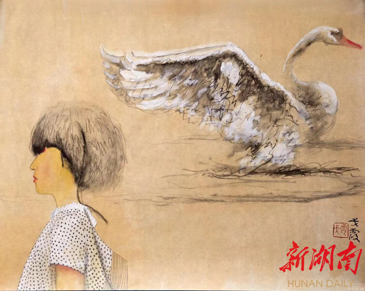 展览展出著名艺术家秦龙老师、戈霞老师的作品20件。邹建平为戈霞写过一首诗“致戈霞与飞鸟”,他在致辞中说,戈霞其人其作,正如飞鸟一般,热爱自由和生命,向往爱与美好。两位艺术家的心里,都有着有孩子与孩子的相遇,智者与智者的对谈。