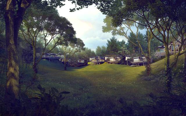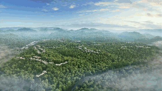 在安吉桃花源的中心,三山两谷间,有56栋山地现代别墅从自然中长出,“悬浮”于山坡之上,像极了山林间浮起的朵朵闲云。