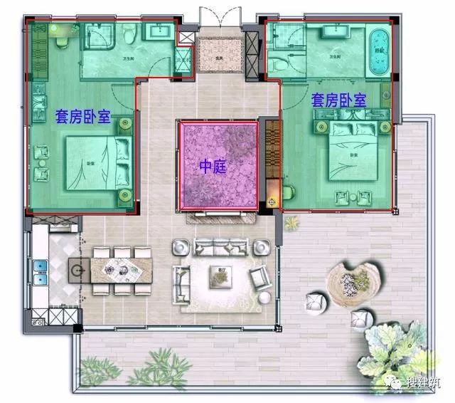 内有中庭,外有露台,