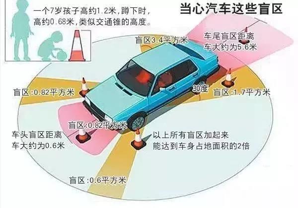 倒车时注意右侧的横向距离要比左侧宽些,因为前轮的转弯半径比后轮转弯半径大,倒车时车头会向外甩,很容易压到右侧在盲区内的小孩。