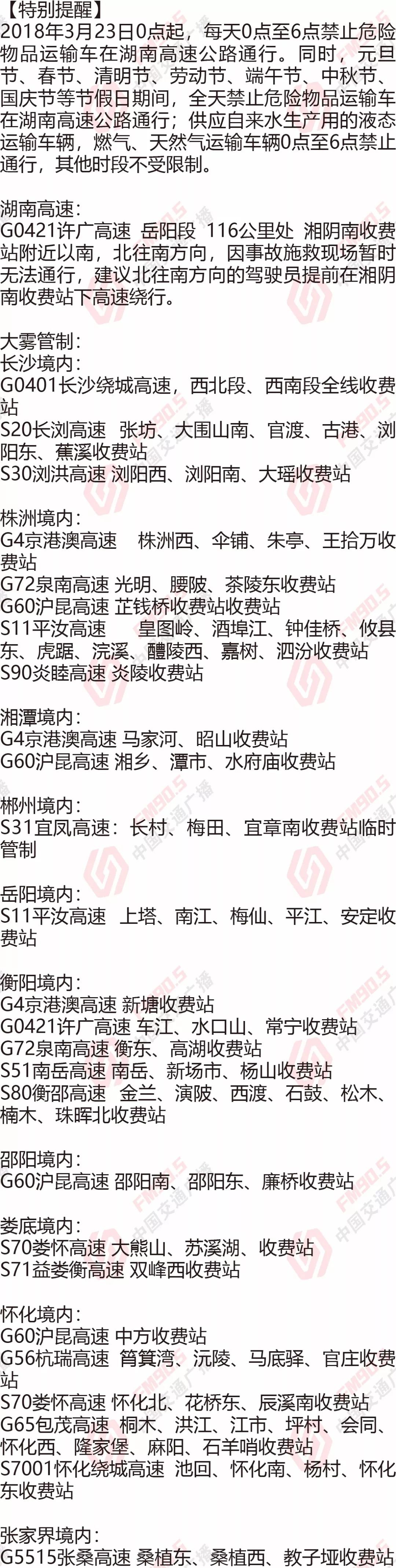 5、岳临高速:蒸湘、车江、水口山收费站临时管制;(3)