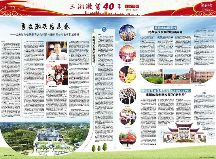与王格楠相识,已有5年之久。几年来,我们一直关注着他的发展动向。从他2013年临危受命,注资并出任百废待兴的耒阳市慈晖学校校长;到2016年敢为人先,在乡村投资兴建耒阳市孔子学院和格楠教育文化拓展基地;再到2018年众望所归,中途接手耒阳市康桥美郡地产项目,摆在他面前的都是险滩硬茬,没有先例可循,堪称一路荆棘,也一路惊奇。