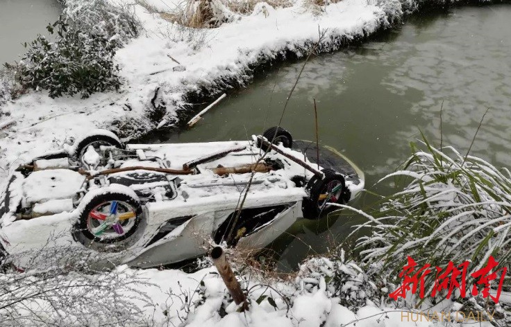 9时许,何某江驾着白色轿车载着母亲和一岁多的儿子、11岁的侄女何某彬及11岁的表妹何某妮、13岁的表妹何某晴去做客。约1个小时后,他们途经高坪村南坌方家老屋组村民方等勤的门前时,因路滑和车速过快,轿车不幸坠落离路面3米高的鱼塘,车头被塘水淹没了一半,大半个车身露在水面。