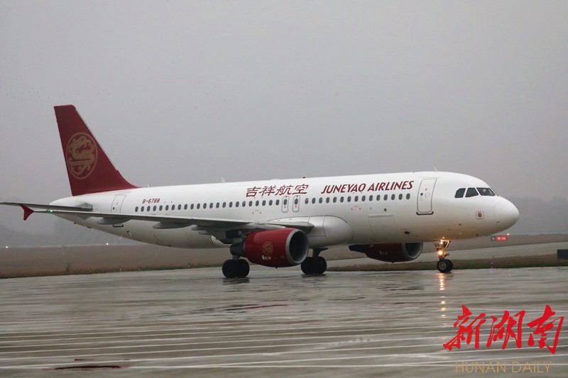 当日6时45分,由吉祥航空空客320飞机执飞的HO1035航班满载乘客从杭州萧山机场起飞,经过近两小时飞行,8时55分,降落在岳阳三荷机场(YYA),标志着岳阳三荷机场正式通航营运。