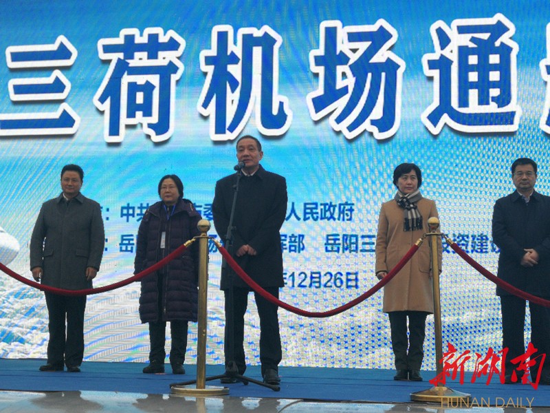 在随后的通航仪式上,岳阳市委副书记、市长李爱武致辞。她说,这既是570万岳阳人民期盼已久的一件大喜事,也是岳阳交通发展史上的一个里程碑。三荷机场正式通航,架起了岳阳高质量发展的“空中桥梁”,标志着岳阳由此迈进了“航空时代”,岳阳市“四位一体”立体交通新格局基本形成。