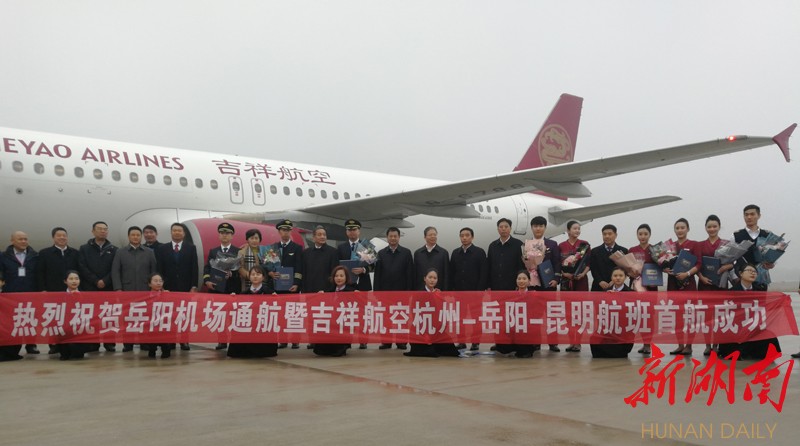 当日10时,首航开通的杭州-岳阳-昆明航线从岳阳起飞,机内乘客满心期待。