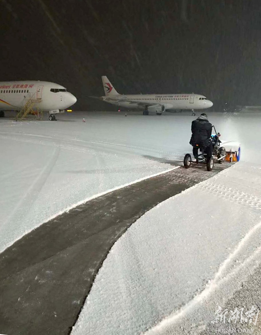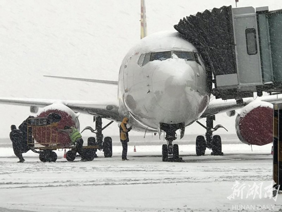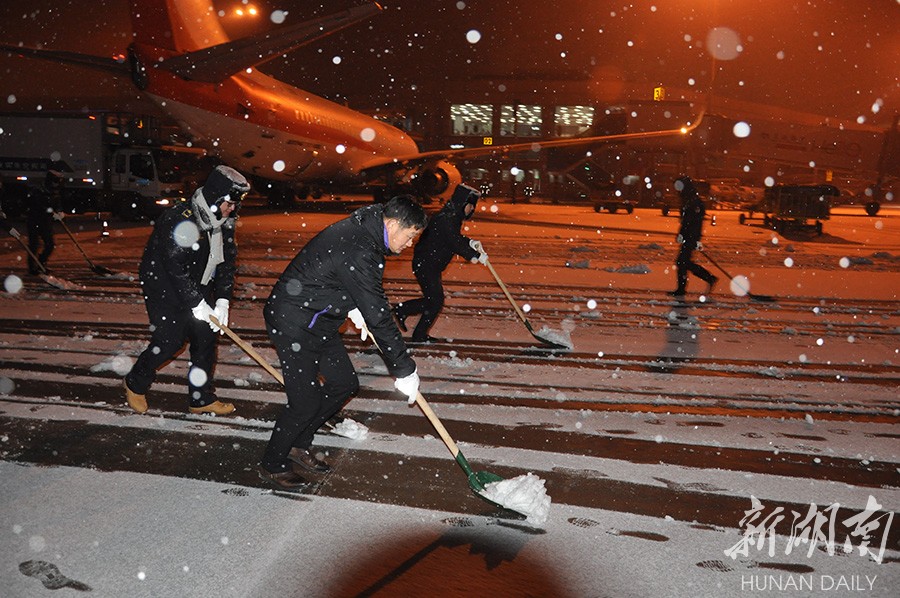 经过机场工作人员10余个小时的除冰作业,12时40长沙机场跑道、滑行道恢复正常使用,陆续安排航班起降。