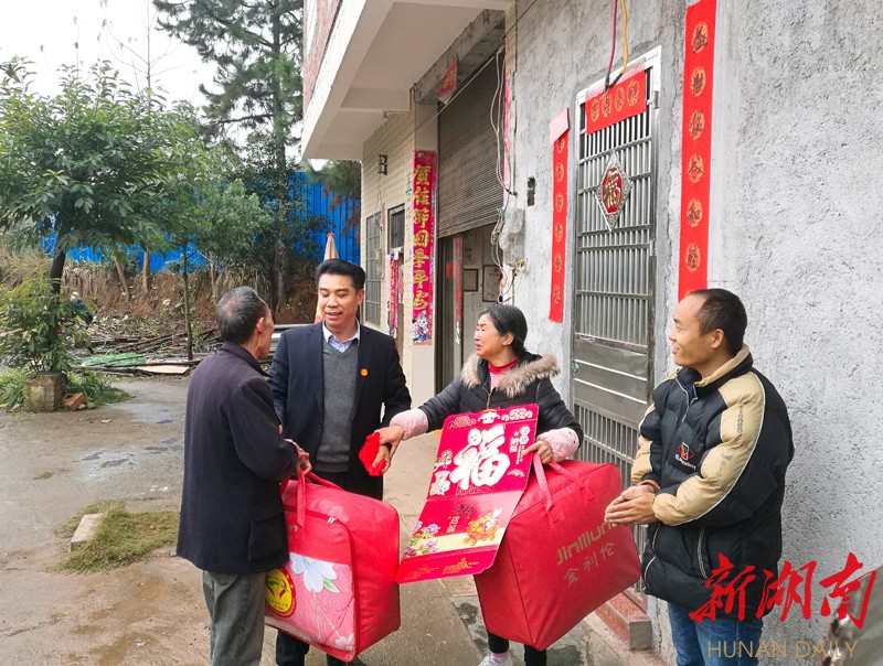 12月27日,隆冬时节的湘南,天空飘着细细雨丝,寒风凛冽。谢运良带着几名宜章好人协会的成员来到一六镇宝塘村,给贫困户谭高一家送来新年物资。谢运良是当地两家企业的负责人,2016年底担任宜章好人协会会长。