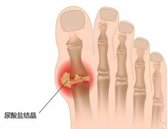 疼痛常于夜间发作,局部皮肤发红,关节周围肿胀、疼痛、发热,活动及功能受限,可致体温升高,通常症状在1-2天达到高峰,持续1-2周后可自行缓解,大多侵犯一个关节。多次发作后关节内尿酸盐逐渐增多,疼痛发作逐渐频繁,所涉及的关节也增多。多年反复发作会造成严重后果:关节畸形、僵直、肿胀,脱位或半脱位,痛风石形成及肾结石;也可致动脉硬化,痛风石沉积于血管壁及心脏瓣膜可能会造成循环障碍。严重影响所累及的关节、组织、器官的功能。