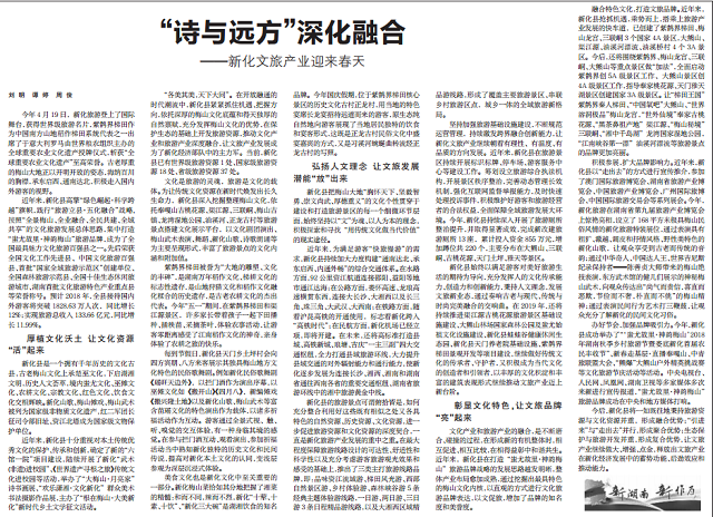 今后,新化县将一如既往地秉持旅游资源与文化资源并重,形成融合优势;“引进来”与“走出去”并行,形成聚合优势;生态保护与旅游开发并重,形成复合优势,让文旅产业继续做大、增强、点金,释放出文旅产业在新化经济发展中的蓄势功能、后劲效应和推动能力。