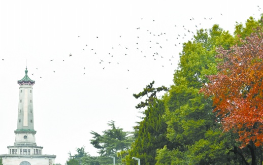 1月4日,湖南烈士公园,椋鸟成群结队在树枝间飞来飞去。每到冬季,在长沙的各大园林及树木茂盛的地方,常常可以看到成群的鸟结伴飞翔觅食,给冬日的星城增加了一道亮丽的生态美景。湖南日报·新湖南客户端记者 田超 摄
