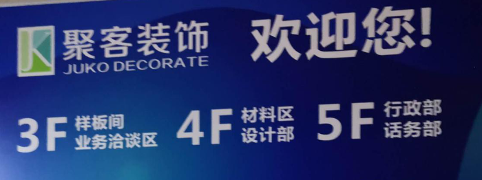 新家居频道随后实地走访了长沙“天地和”曾经的门店所在地——开福区湘江中路金色屋顶大厦。发现招牌已经变成了聚客装饰。从地下车库上到位于三楼的门厅,沿路的指示牌也都印有“聚客装饰”的字样。门厅依然装修得金碧辉煌,在店内的展板上写着“12月30日重装开业”字样。