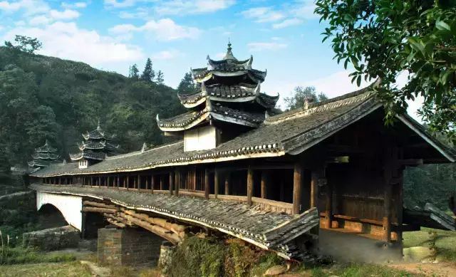 ▶通道迴龙桥,原名“龙皇桥”,又称“俗答花桥”,位于通道坪坦乡。始建于清乾隆二十六年(1761)。
