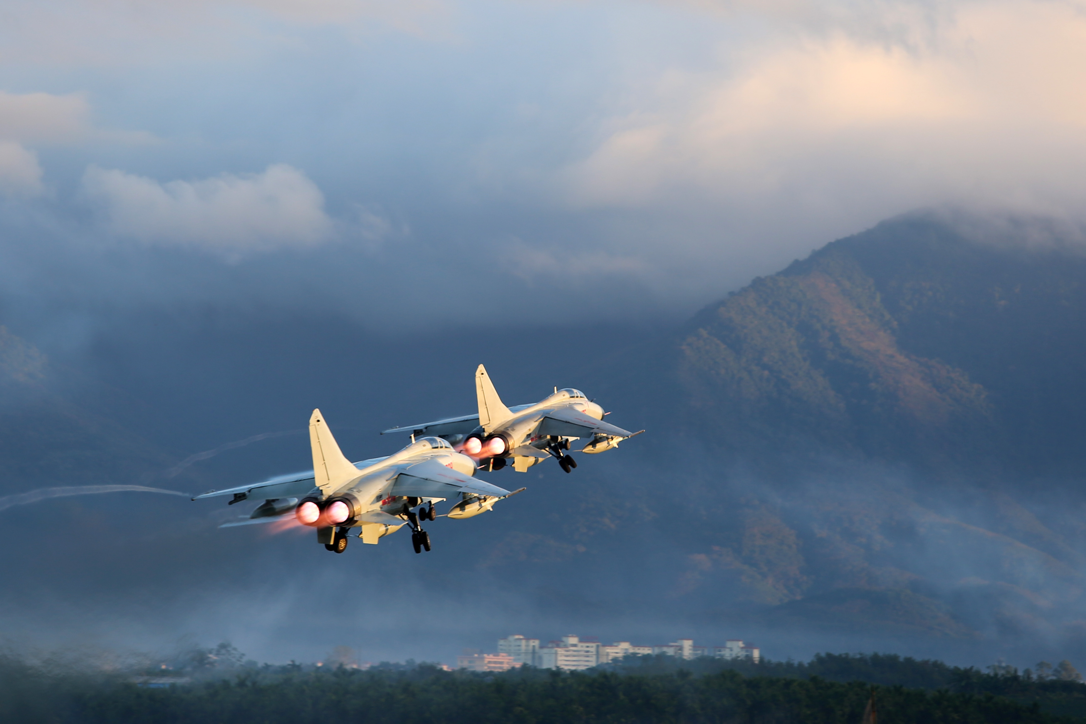 1月4日,南部战区海军航空兵某旅某新型歼轰机编队起飞。新华社/聂海飞