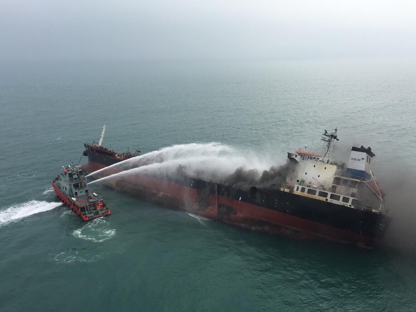 1月8日,一艘货轮在香港南丫岛附近海面起火。这是现场救援画面。新华社发