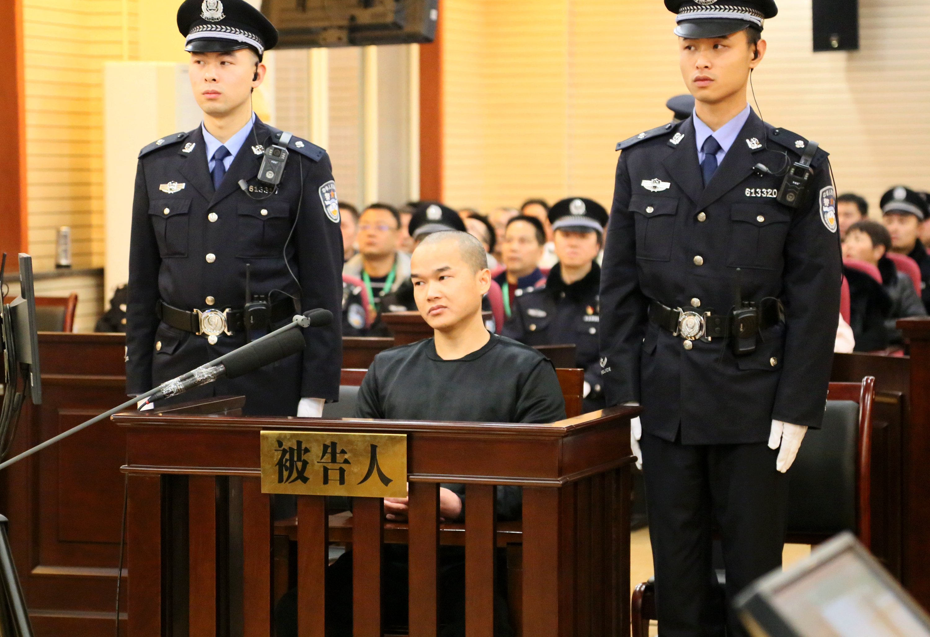 1月8日,被告人张扣扣(前)在汉中市中级人民法院庭审现场。当日,陕西省汉中市中级人民法院依法公开开庭审理被告人张扣扣故意杀人、故意毁坏财物一案并当庭宣判,判决张扣扣犯故意杀人罪,判处死刑,剥夺政治权利终身;犯故意毁坏财物罪,判处有期徒刑4年,决定执行死刑,剥夺政治权利终身。新华社发(汉中市中级人民法院供图)