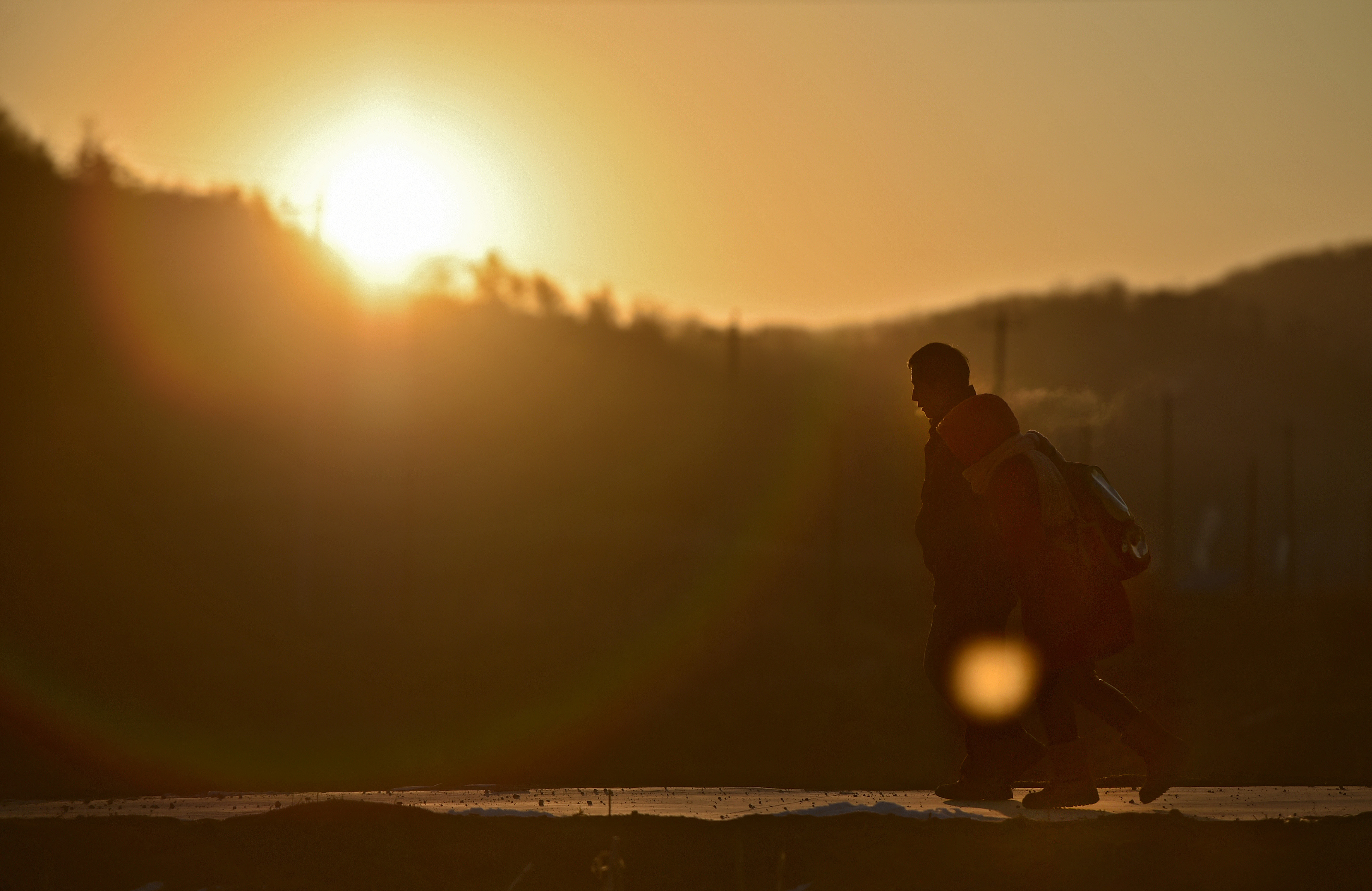 1月8日一大早,辽宁省铁岭市深山中的砚台小学的扈志生老师和他唯一的学生孙晓峰冒着严寒,迎着朝阳,走在上学的路上。这段20多分钟的山路,成为师生二人往返学校必经的行程。新华社/姚剑锋
