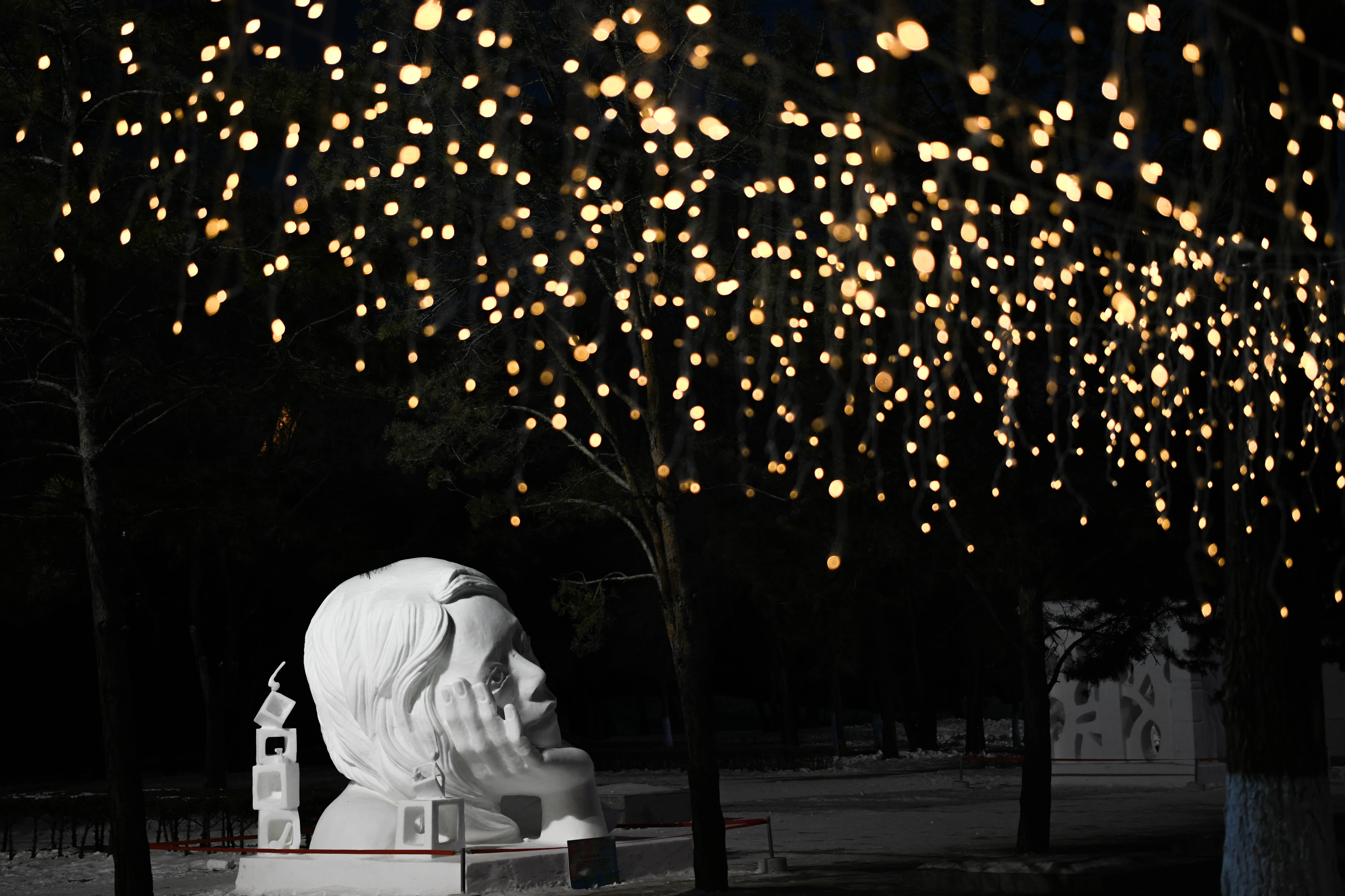 1月4日在哈尔滨太阳岛国际雪雕艺术博览会园区拍摄的雪塑。新华社/王松