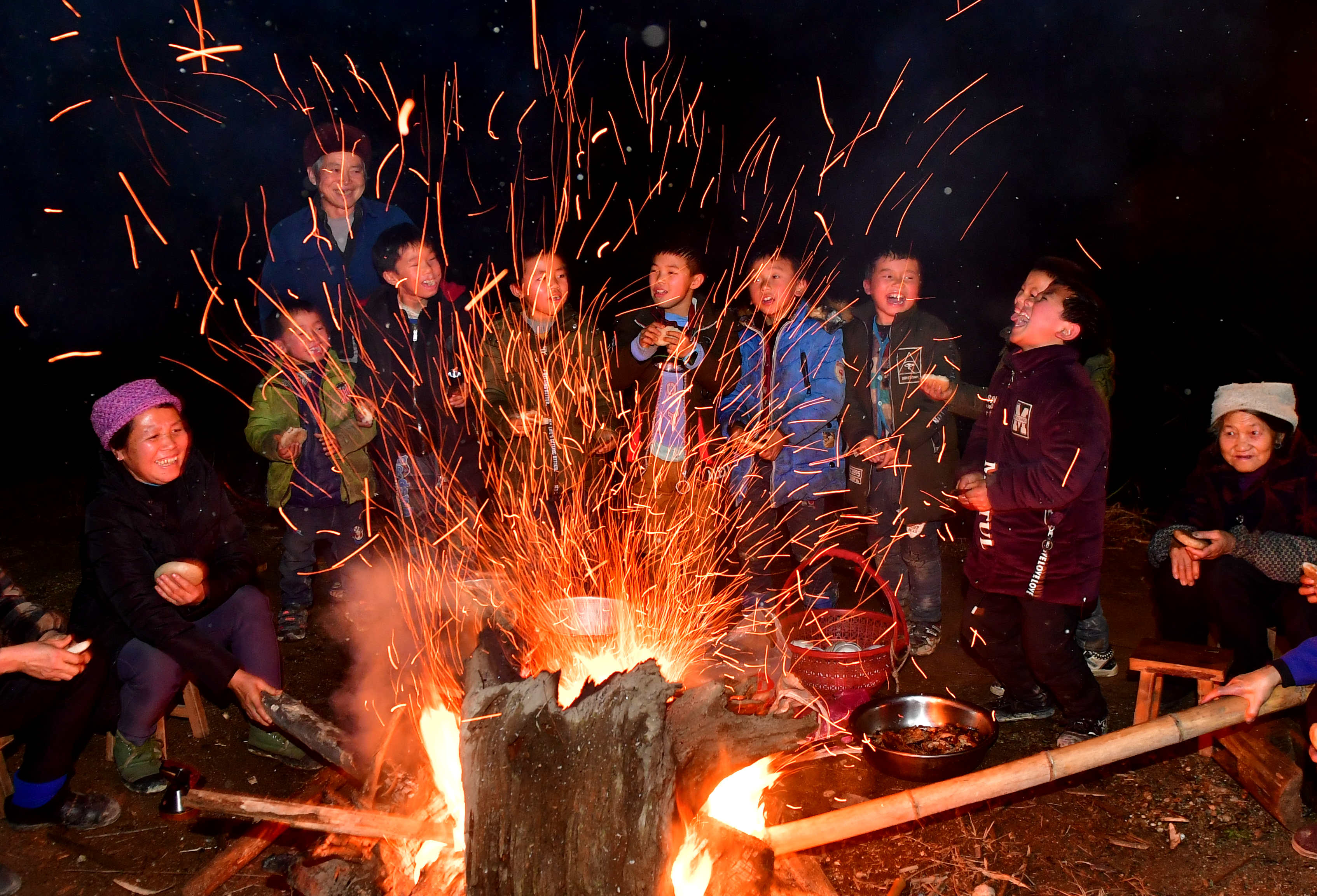 1月5日,在广西融水苗族自治县杆洞乡尧告村,村民们在户外聚会。当日,广西融水苗族自治县杆洞乡尧告村迎来传统苗年。新华社/黄孝邦