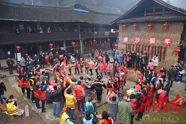 侗年,是侗族人民的传统节日,是侗族人民一年当中最隆重最盛大的节日,在芷江,每年的腊月二十三,侗民们开始过新年,直到正月十五才算过完年。在黄沙侗寨,“过侗年”活动在热闹的锣鼓声中刚刚拉开序幕,而锣鼓敲响的,更是古老侗寨发展的勃勃生机。