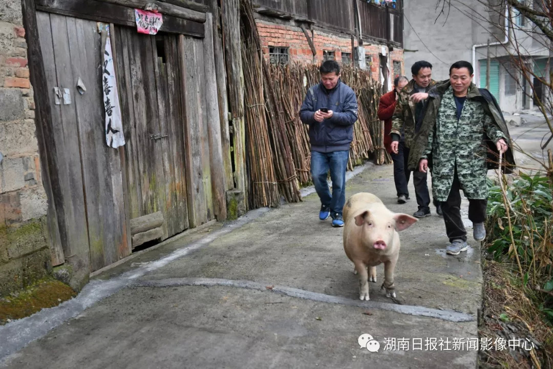 腊月二十八,邻居高兴地买回一头年猪,说:“都在外打工,家里没人喂猪,买一头回来过年。”真好,猪年金猪拱门,寓意五福临门!