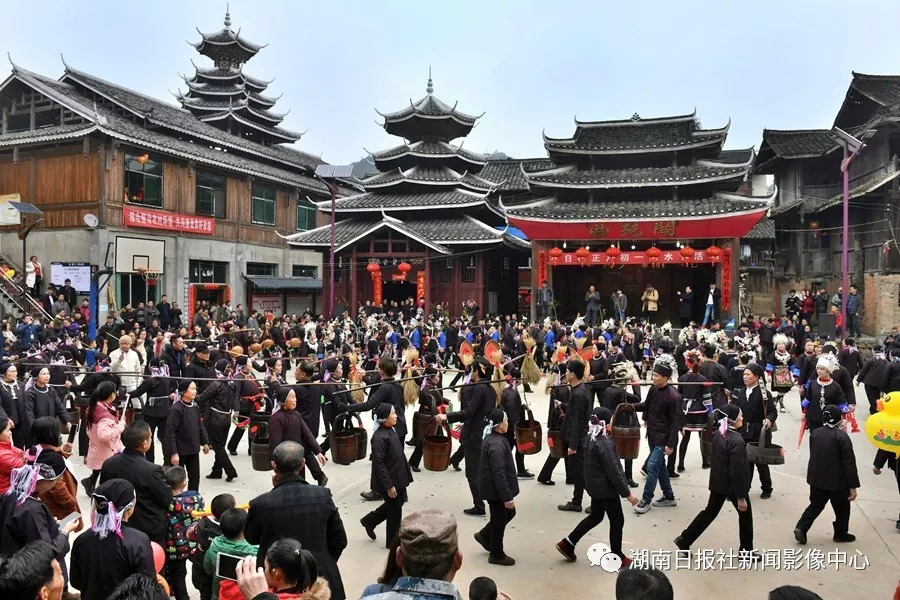正月初四,文坡村水神节,这是侗寨春节又一古老的年俗。那里的油茶可好吃了,据说是用“神水”泡的缘故,喝了水神井的水能滋补养颜,小伙更帅,姑娘会变得更漂亮。