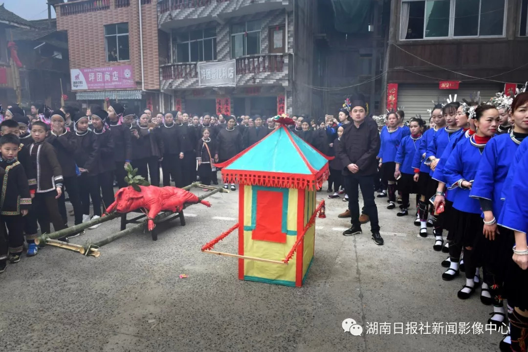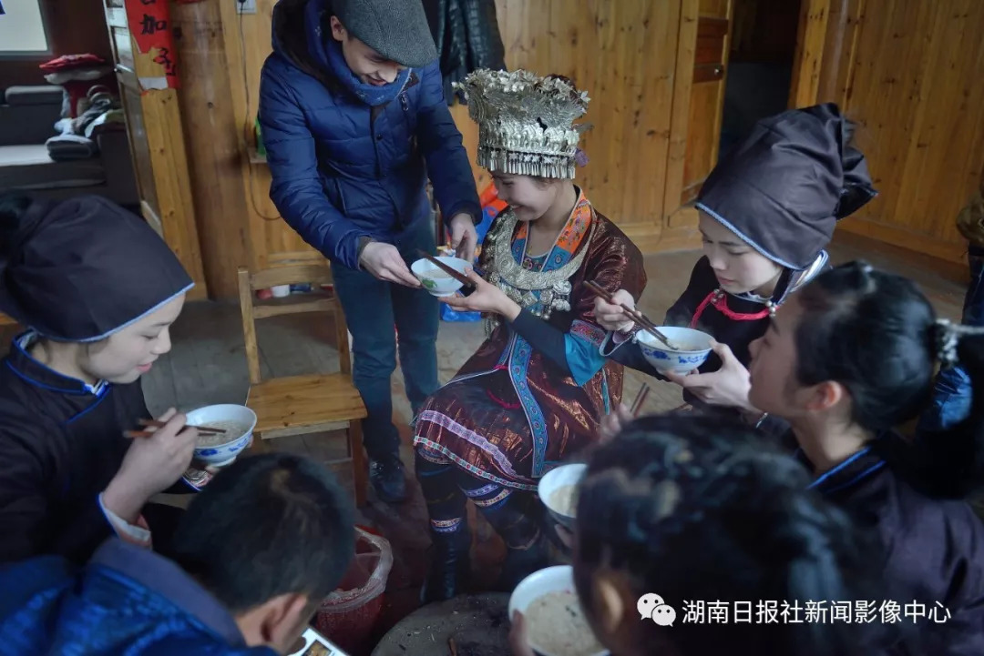 正月初五,中步村接亲节,男方家要前往女方家接亲,传承侗族古老朴实的婚俗。
