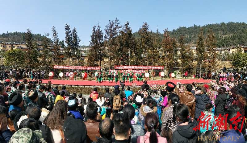 今天是大年初一,在湘西土家族苗族自治州凤凰县麻冲乡老洞苗寨,来自县内及周边村寨的苗族同胞欢聚一堂,进行有滋有味的活动,热热闹闹欢庆新生活,喜迎新春。