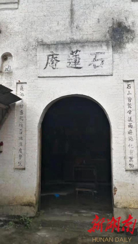 在湖南涟源市七星街镇菜花村鹫峰山就有一座建于明未清初时期的石莲奄,进去的石门上有一对联: