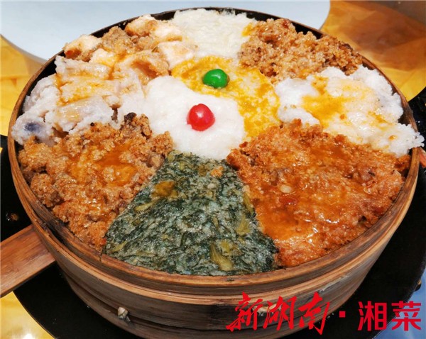 “沔阳三蒸指的是以水产类、禽畜类、蔬菜类为主要原料,运用多种蒸菜技法的系列蒸菜。”在考察团到达李和明大师工作室参观时,中国资深烹饪大师、湖北省首席技师、仙桃市烹饪酒店行业协会会长、沔阳三蒸协会会长、沔阳三蒸非遗省级传承人李和明为调研组科普道:“浏阳蒸菜所用腌腊制品与豆豉较多,而沔阳三蒸以粉蒸最具特长。粉蒸、扣蒸、干蒸......都是沔阳蒸菜技法。”