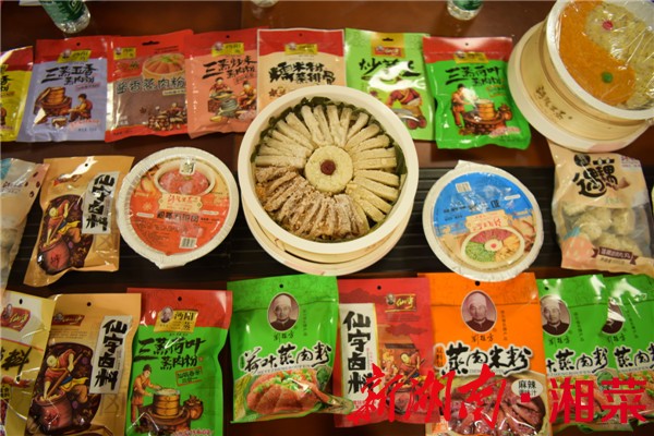 “政府搭好平台,我们只要唱戏。”采访中,湖北仙宇调味食品股份有限公司董事长刘泽明告诉记者,非常感谢政府的大力扶持。仙桃市政府授权该公司开发生产沔阳三蒸预制菜成品,加快沔阳三蒸产业话发展,成立了产业化发展小组,由常务副市长担任组长。“这些都是我们的产品,有几十种,这款‘扣三蒸’预制菜单品,去年在线上零售额就达到130万左右。”刘泽明兴奋地对大家说。
