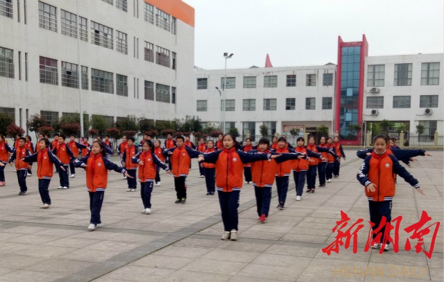 ▲东安县舜德学校学生跳“社会主义核心价值观”手语操。