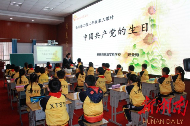 “今年春季开学伊始,我们在全市中小学校全面实施‘向日葵工程’,永州市委宣传部、永州市教育局统一制作课件,组织教师培训,各地各校将童心向党、经典传承、未来梦想等三大块内容纳入教学课表,安排固定课时进行教育引导,让红色文化、优秀传统文化和社会主义核心价值观植入学生心中。”永州市教育局局长张建坤说。