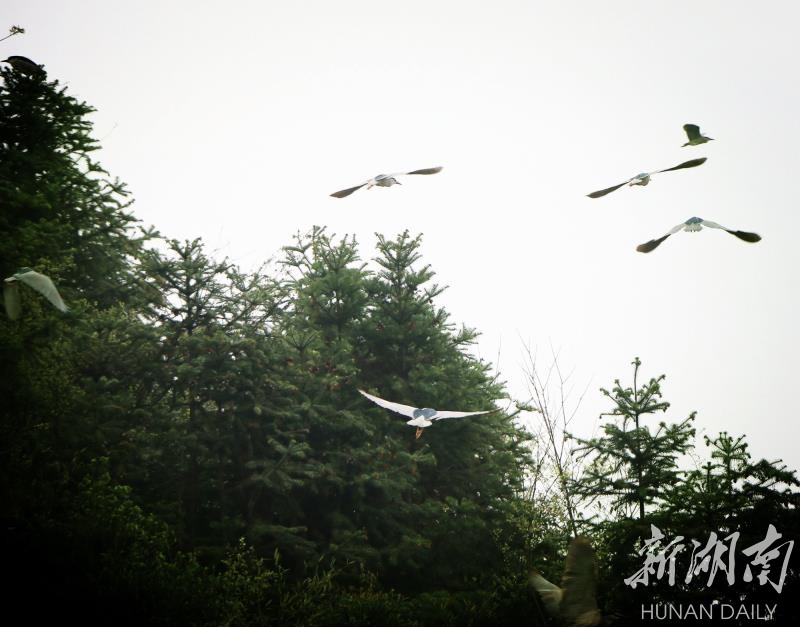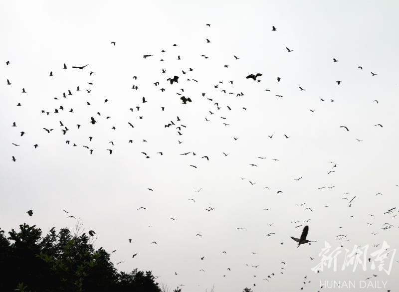 湖南日报·新湖南客户端3月29日讯(思文 万根 亚平)万鹭聚平江,生态缀绿妆。3月29日清晨,在平江县城关镇四方塘村英家垅地段,但见附近几个山头数以万计的鹭鸟,欢乐地栖息于杉松之间,或展翅高翔,或振翅欲飞,或屹立枝头、嘎然长鸣、呼朋引类,安宁地享受着惬意时光。每当群鸟齐飞,遮天闭日,蔚为壮观。