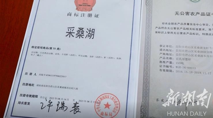 今年43岁的肖海书返乡创业,赚到盆满钵满。2013年,他成立了岳阳市君山区采桑湖龙虾专业合作社,会员现已发展到300余户,龙虾养殖面积达3万余亩。肖海书向现场的网友们报喜:去年6月,镇里的采桑湖小龙虾喜获北京冬奥会入选食品!