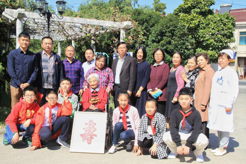 " 去年我们给周奶奶过生日时,她的床头案边摆放着一大叠报纸。她的眼睛花了,可是坚持每天用放大镜阅读报纸,她身体力行告诉我们什么是‘活到老,学到老’。周奶奶的自觉学习是一面明亮的镜子,她的乐于助人也是我们学习的榜样。" 局前街小学一名学生代表说道。