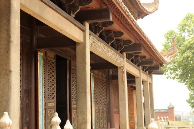大成殿殿内用14根楠木大柱构成主架,殿身周边由24根石柱组成东、西、北三面墙内支柱和南面副阶檐柱,充分体现了江南建筑的风格和工艺特色。