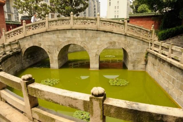 岳阳文庙整组建筑自下而上,现存有泮池、状元桥、棂星门、大成门、月台、大成殿、乡贤祠、名宦祠、东西庑房。