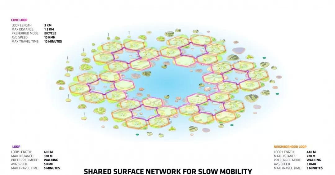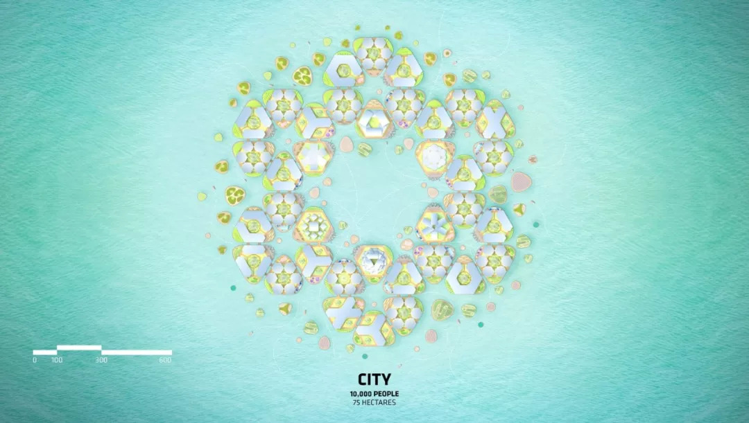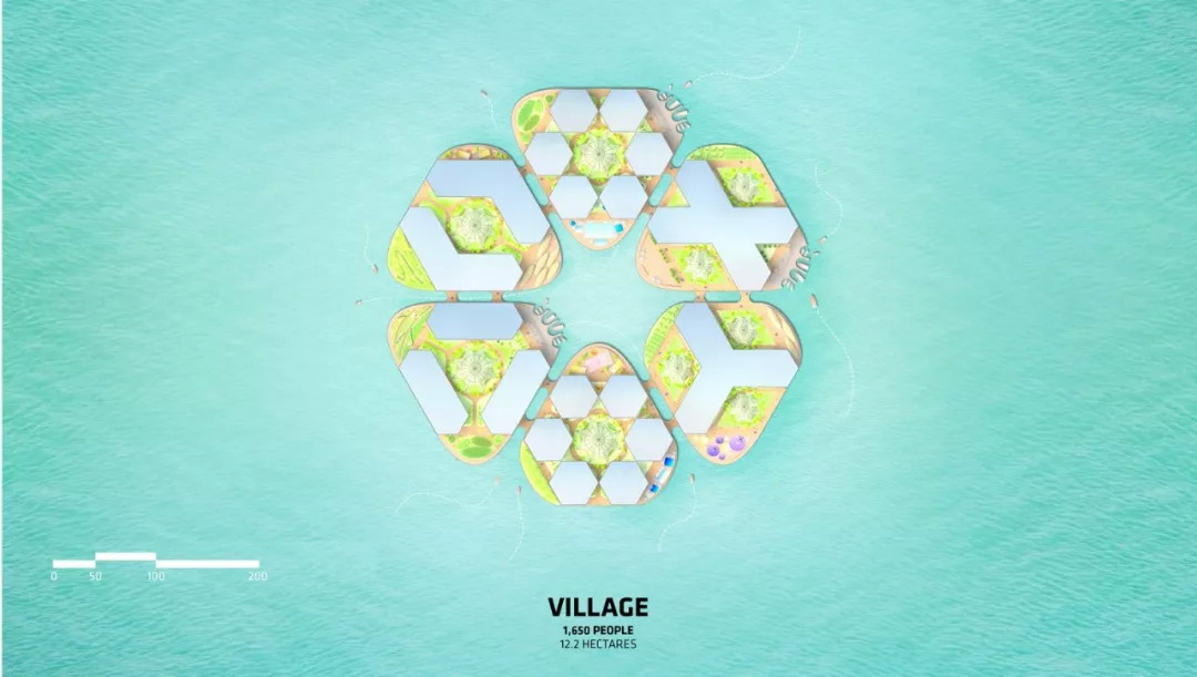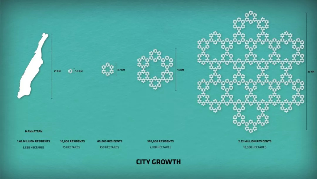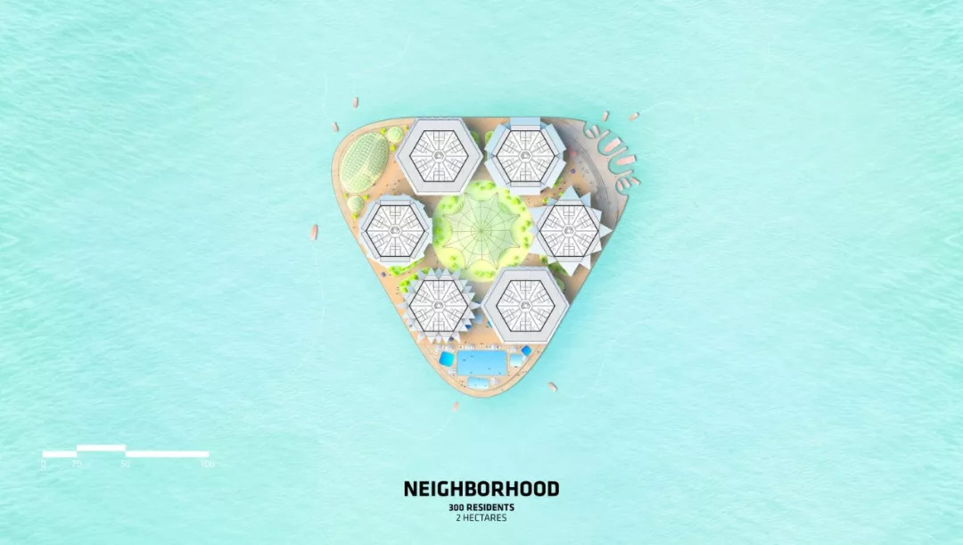 该系列由一系列六角形平台组成,可容纳约10000名居民,每个4.5英亩的六边形可容纳300人左右,六个平台将组成一个村庄,六个村庄成为一个城市。