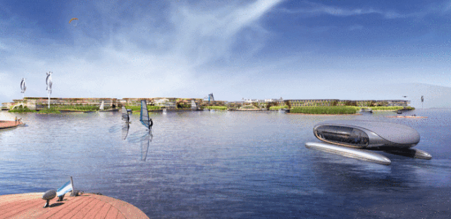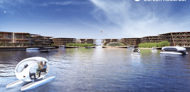 企业家Mark Collins Chen和著名建筑师Bjarke Ingels以及水工程师、节能设计专家等,向联合国组织展示了可持续发展的水上城市提案。